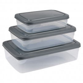 Description Lot de 3 Boîtes de Conservation "Plas" 1,36L Vert Munissez-vous de ce Lot de 3 Boîtes de Conservation "Plas" 1,36L Vert pratique et fonctionnel que vous pourrez utiliser chaque jour au gré de vos besoins ! Que ce soit pour préparer vos repas de la semaine ou conserver des aliments déjà préparés, ces boîtes de conservation vous permettront d'organiser votre frigo comme bon vous semble ! Caractéristiques : Dimensions : L. 15,5 x l. 15,5 x H. 10 cm Matière : Plastique Spécificités : Pratique & Utile Lot de 3 Boîtes de Conservation Forme Carrée Contenance : 1,36 L Coloris : Vert *Prix moyen constaté sur des sites concurrents ou prix conseillé par le fournisseur. Fiche technique Dimensions L. 15,5 x l. 15,5 x H. 10 cm Longueur 15.5 Largeur 15.5 Hauteur 10 Capacité 1,36 L Matière Pla