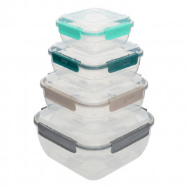 Description Lot de 4 Boîtes de Conservation "Klic" 22cm Transparent Ce Lot de 4 Boîtes de Conservation "Klic" 22cm Transparent est conçu pour offrir une solution de rangement pratique et polyvalente pour vos aliments. Fabriquées en polypropylène, ces boîtes sont durables, légères, et idéales pour une utilisation quotidienne. Grâce à leurs couvercles clipsables, elles garantissent une fermeture hermétique, préservant ainsi la fraîcheur et la saveur de vos aliments. Avant de passer ces boîtes au micro-ondes, il est recommandé d'ouvrir les clips du couvercle pour permettre à la vapeur de s'échapper. Pour assurer une étanchéité parfaite, il suffit d'appuyer légèrement sur le couvercle avant de fermer la boîte. Ce lot comprend quatre boîtes de tailles variées, avec des clips de différentes coul