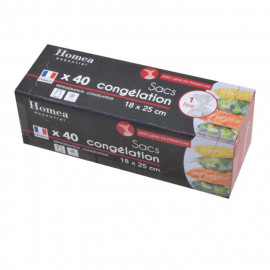 Description Lot de 40 Sacs de Congélation "Liens" 1L Transparent Ne passez pas à côté de ce Lot de 40 Sacs de Congélation "Liens" 1L Transparent qui deviendra rapidement un élément incontournable de votre cuisine ! Avec ses liens de fermeture inclus, vous pourrez le placer au réfrigérateur ou au congélateur pour protéger vos denrées alimentaires de l'humidité et des moisissures. Caractéristiques : Dimensions : L. 18 x l. 25 cm Matière : Polyéthylène Spécificités : Pratique & Hermétique Lot de 40 Sacs de Congélation Forme Rectangulaire Avec Liens de Fermeture Passage au Réfrigérateur & au Congélateur Conservation jusqu'à -25°C Contenance : 1 L Fabriqué en France Coloris : Transparent *Prix moyen constaté sur des sites concurrents ou prix conseillé par le fournisseur. Fiche technique Dimensi