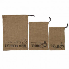 Description Lot de 3 Sacs de Conservation "Toile" 39cm Naturel Optez pour ce superbe Lot de 3 Sacs de Conservation "Toile" 39cm Naturel pour conserver vos denrées alimentaires à l'abri de la lumière et de la poussière ! Donc, n'attendez plus et utilisez ces beaux sacs pour vos pommes de terre, vos oignons et vos ails ! Caractéristiques : Dimensions : L. 39 x l. 28 x H. 41,5 cm Matières : Textile & Jute Spécificités : Pratique & Utile Lot de 3 Sacs de conservation En toile de jute Garder à l'abri de la lumière 3 Tailles différentes 100% Naturel Lavable & Réutilisable Agissons pour notre planète Cordelette de fermeture en coton Facile d'Utilisation Poids : 0,16 kg Coloris : Naturel *Prix moyen constaté sur des sites concurrents ou prix conseillé par le fournisseur. Fiche technique Dimensions