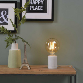 Optez pour cette petite lampe en marbre blanc à poser un peu partout ! Tout en discrétion, cette lampe s'invite avec délicatesse et sobriété dans votre intérieur. Incontournable, elle sublimera toutes vos ambiances et coloris. En solo, duo ou trio, elle donnera un supplément d'âme évident à votre entrée, chambre, salon etc. Son ampoule fumée apportera une touc
