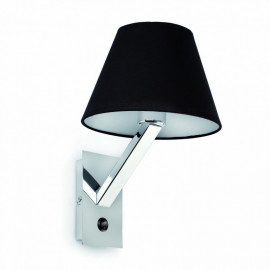 Belle applique design en métal chromé équipée d'un abat-jour en coton noir. Un interrupteur est situé sur l'applique. Cette lampe applique au design minimaliste s'intègrera dans tous les intérieurs. L'abat-jour noir de ce luminaire donnera une ambiance cosy et chaleureuse.