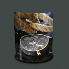 Ambiance voilier ancien pour cette applique murale Plage des Demoiselles. Avec le cordage marin et la boussole on s'imagine tout de suite en pleine régate de vieux gréments entre le Golfe du Morbihan et Belle Ile en Mer.