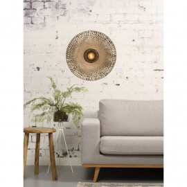 Cette applique en bambou tressé à la main apporte un côté très naturel et de la sérénité à votre pièce. Sa dimension de 44cm est parfaite pour être suffisamment présente, tout en nous permettant de l'accrocher facilement avec sa dimension qui reste raisonnable.
