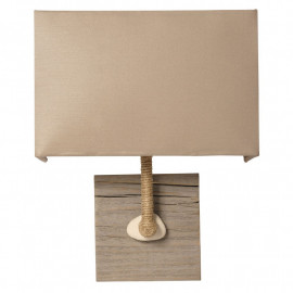 Un luminaire chic et chaleureux grâce au bois vieilli et à son abat jour en coton couleur taupe.