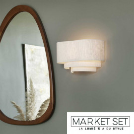 Voici ici une très belle applique murale MARKET SET conçue en cannage et en lin. Ce luminaire apporte douceur et chaleur à votre intérieur grâce à ses matériaux et à ses couleurs. Elle sera parfaite installée dans une chambre à coucher ou bien dans un salon ou encore un couloir.
