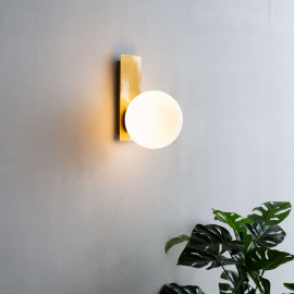 Très belle applique murale chic et discrète ! Composé d'une boule de couleur blanc laiteux et d'un socle à la finition laiton, Elle accueille une ampoule E27 avec un éclairage maximum de 25 W. Choisissez une ampoule de petit format pour qu'elle puisse rentrer dans l'ouverture du verre. Associez l'applique avec nos suspensions Oromia.