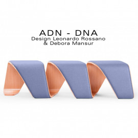 Banc d'attente design ADN-DNA, assise 3 places, réalisé en multicouche de bois de hêtre courbé, d'une épaisseur de 18 mm. Finition supérieur placage de chêne naturel avec rembourrage de mousse polyuréthane. Habillage tissu tissé gamme Urban du fabricant CAMIRA, composition 100% polyester. Avec tampons de protection des sol.