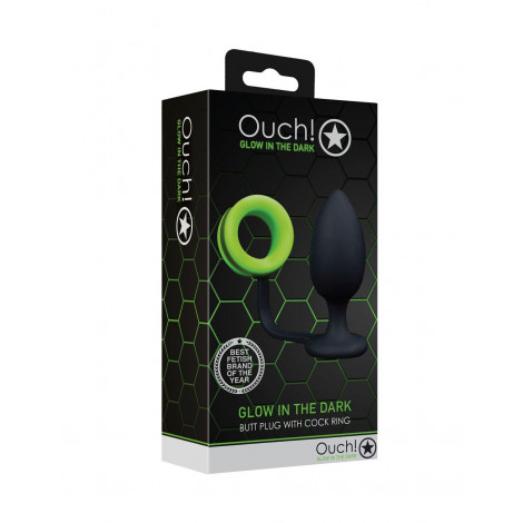 Doublez les plaisirs avec ce plug anal noir et son cockring phosphorescent de la marque Ouch! Ouch! Glow in the Dark, le futur du bondage est arrivé. Conçu avec une esthétique bondage authentique, mais présentant l'avantage de briller dans lobscurité, les détails verts fluorescents transformeront chaque événement en une fête. Le plug assure la stimulation anale pendant que le cockring améliore la qualité et la durée de l'érection. Le petit + : l'anneau reste visible dans l'obscurité grâce à ses propriétés phosphorescentes. Utilisez cet accessoire BDSM seul ou associé à dautres produits de la collection Glow in the Dark. Les produits Ouch! Glow-In-The-Dark doivent être activés à la lumière du soleil avant de pouvoir être utilisés dans lobscurité. Caractéristiques : - Plug anal + anneau de p