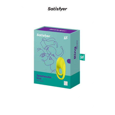 A la fois un cockring pour améliorer et prolonger l'érection et un stimulateur de plaisir vibrant pour le couple ! L'anneau de pénis vibrant "SATISFYER Spectacular Duo" est un double cockring qui permet de serrer simultanément le pénis et les testicules pour obtenir un effet de congestion sanguine et ainsi accroitre la qualité et la durée de l'érection. La deuxième boucle qui passe autour des testicules permet une stimulation supplémentaire par rapport au simple port d'un anneau pénien, pendant que les vibrations produites par le sextoy décuplent le plaisir des 2 partenaires en assurant une stimulation supplémentaire du clitoris, des testicules et du périnée. Grâce à sa forme ergonomique, le stimulateur clitoridien stimule efficacement le clitoris. Il très facile à utiliser grâce au gros b