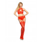 Dévoilez vos plus beaux atouts dans cet ensemble en fine résille rouge de la marque Paris Hollywood. Personne ne pourra vous résister dans cet ensemble 2 pièces top décolleté et collants ouverts très sexy. Les collants façon porte-jarretelles et bas mettront en valeur vos hanches et vos fesses tout en affinant vos jambes. Le top sans manche présente un décolleté en il très aguicheur, idéal pour attirer tous les regards. Cet ensemble au motif fleuri original vous sublimera tout en transparence, et donnera envie à votre partenaire den découvrir plus ! Le tissu extensible très confortable conviendra à toutes les morphologies. Pour encore plus deffet, nhésitez pas à porter cet ensemble sans string ! Caractéristiques : - Ensemble top brassière et collants ouverts (string non inclus) - Taille un
